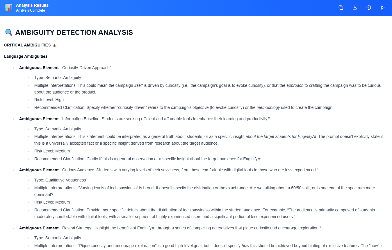Use case: Not sure why a prompt isn't performing? Run it through analyzers to identify specific weaknesses.